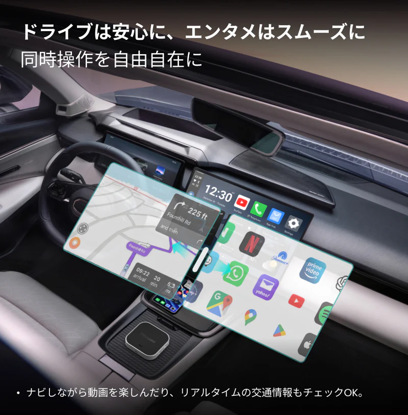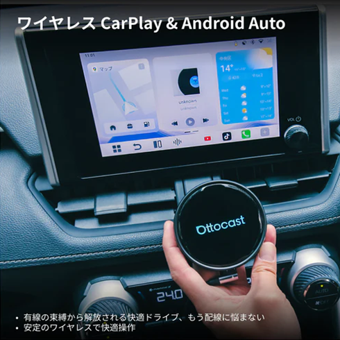 未来のドライブ体験を手に入れようOTTOAIBOX【次世代AI BOX正規モデル】 ワイヤレスCarPlay & Android Auto接続するだけで、簡単にカーナビをスマホ化 AI音声コントロールNano AIで音声操作、ChatGPTと会話もできる OTTOCASTシリーズは、日本正規代理店として商人屋が正規モデルを販売し、日本人による丁寧なアフターサポートを提供しています。 該当する商品ラインナップ 【正規モデル】OTTOAIBOX E2OTTOAIBOX E2は、純正の有線Apple CarPlay/Android Autoに対応した車載ナビ画面をワイヤレス化 し、車内エンターテインメント機能を拡張する AI Box デバイス です。本体に4GB RAM + 64GBストレージを搭載し、USBポートに接続するだけでシステムのスマート化を実現します。 Amazonで購入 楽天で購入 Yahoo!で購入 商品詳細ページへ 【正規モデル】OTTOCAST P3 ProOTTOAIBOX P3 Proは、Apple CarPlayまたはAndroid Autoに対応した車両に接続することで、車載ディスプレイ上でAndroid OSを起動し、各種アプリを直接操作できる車載用AI Boxです。スマートフォンの画面をミラーリングする仕組みではなく、本体自体がAndroidデバイスとして動作します。 Amazonで購入 楽天で購入 Yahoo!で購入 商品詳細ページへ 【正規モデル】OTTOCAST Nano【最新モデルOttocast Nano】次世代AI BOX「Ottocast Nano」が登場!音声制御が可能で、運転中でも安全に操作が可能です。AIはまるで人と話しているような自然な応答で、会話型AIをお楽しみいただけます。 Amazonで購入 楽天で購入 Yahoo!で購入 商品詳細ページへ 【正規モデル】OTTOCAST P3車のナビでスマホのアプリが利用でき、YouTube・NetFlixなど動画視聴アプリはもちろん、Spotifyなどの音楽ストリーミングアプリも使用できるオットキャストが、より洗練されたデザインで更に使いやすくなりました。 Amazonで購入 楽天で購入 Yahoo!で購入 商品詳細ページへ JAPANモビリティショー出展OTTOCAST正規代理店『商人屋』は、JAPANモビリティショーにてOTTOCASTシリーズ日本正規モデル専用ブースを出展しています。人気車系YouTuberたちの登壇イベントなどを開催し、連日多くのお客様にご来場いただきました。 カーナビがスマホみたいに OttoDriveOSホーム画面は自由にカスタマイズ可能。よく使うウィジェットを好きな位置に配置して、自分好みの操作性をそのまま実現できます。 どこでも繋がるクラウドSIMSIMカードも会員登録も不要。QRコードをスキャンしてすぐに使用開始できます。 プラグ&プレイで簡単設置誰でも簡単に取り付け & 数秒でセットアップ完了。手軽に車をAI化できます。